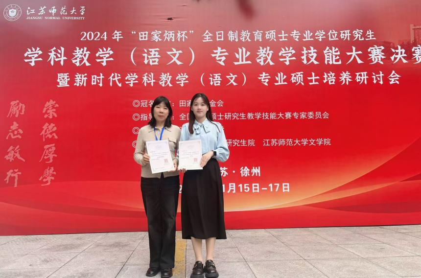 11月15日至17日,2024年全国“田家炳杯”全日制教育硕士学科教学(语文)专业教学技能大赛决赛在江苏师范大学隆重举行,抽奖轮盘 2023级学科教学(语文)研究生于亚芳荣获二等奖,姜良存荣获“优秀指导教师”奖。