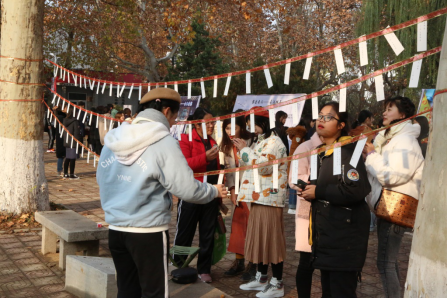为激发同学们对传承传统文化的热情,进一步坚定文化自信,12月1日上午,由抽奖轮盘 团委主办、学生会秘书处承办的"觅古探今——抽奖轮盘 第一届游园会"活动于文史楼前举行。活动吸引了来自各个年级不同专业的一百五十余名学生积极参与。